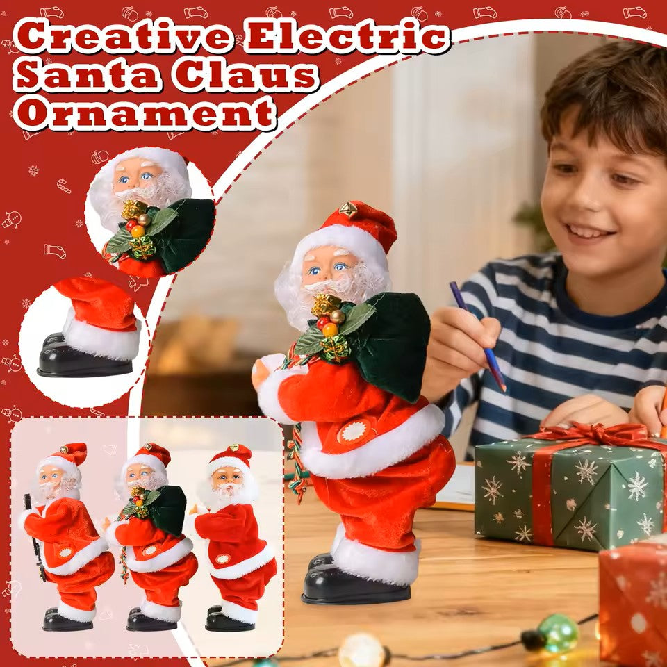Yes! Twerkie Santa dances to cheerful Christmas tunes while shaking his jolly hips.